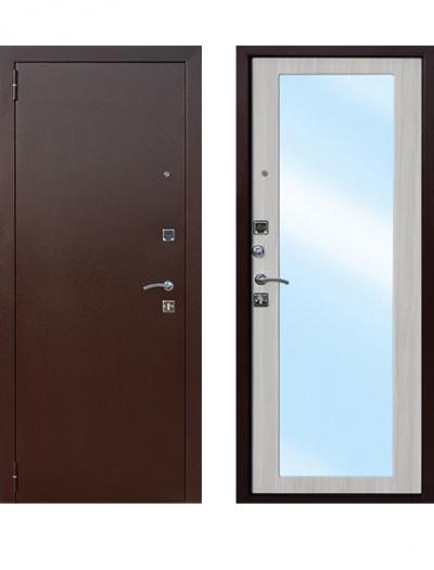 Дверь эконом: порошок, цвет Медный антик+ МДФ 12 мм Белый ясень, с зеркалом ЭК-2062